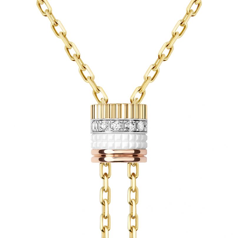 タイのように纏って、斬新なカットのシャツを引き立てたり、あるいはボタンダウンシャツの襟もとに通したり、自由なスタイルを楽しめるネックレスです。モチーフを下の方に滑らせてルーズに身に着ければ、小さめのコットントップスも一層魅力的に。あえてチェーンをアシンメトリーにさせれば、プレーンなニットもスタイリッシュな印象になります。また、チェーンを背中側に垂らせば、大きく開いた背中を美しく飾ることも。