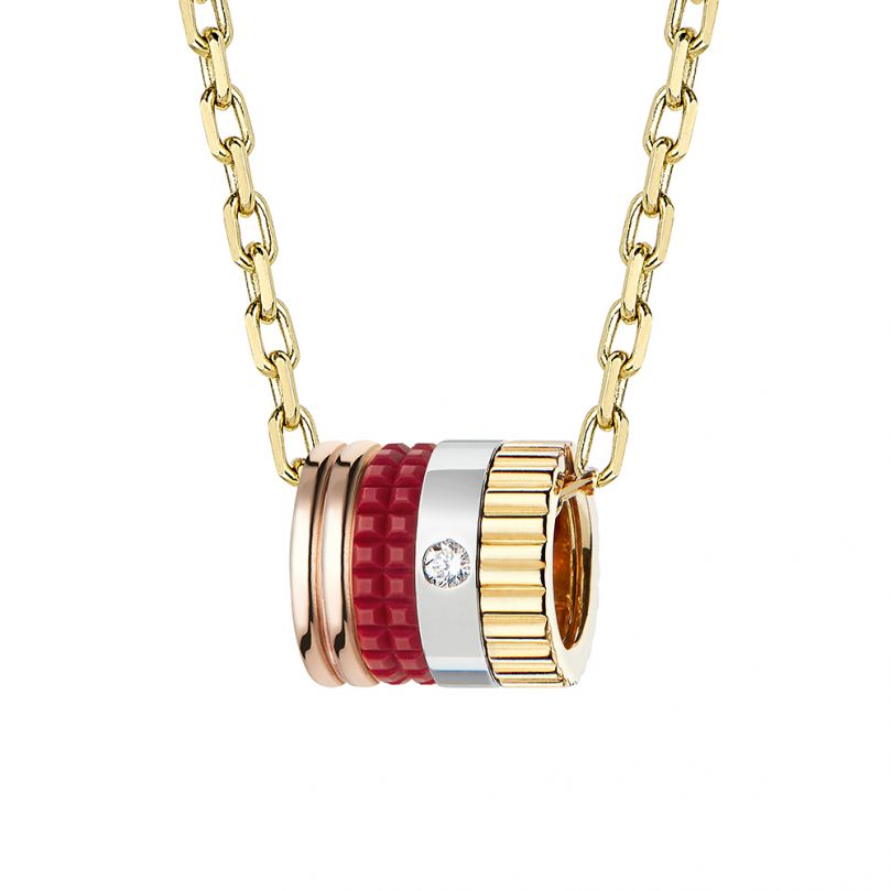 ブシュロンに継承されるグラフィカルな4つのコードが強い個性を放つキャトル。3色のゴールドとダイヤモンドがきらめくキャトル リングに施された鮮やかなレッドセラミックのラインが毎日の装いにアクセントを添えます。
